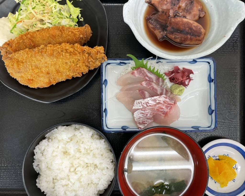 | 大津港水揚 3品セットの日替わり定食です。 |